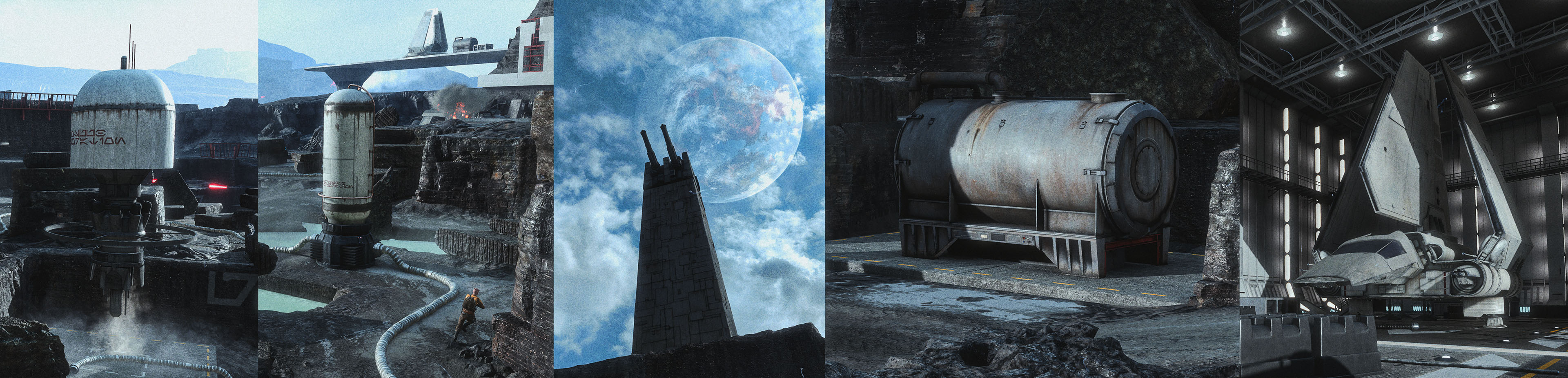 For the kitbashing, I used Frosty Editor to extract assets from Star Wars Battlefront (2015). I had a blast reverse engineering all the channel packing and material blending. Gamedevs really are next level when it comes to optimization.